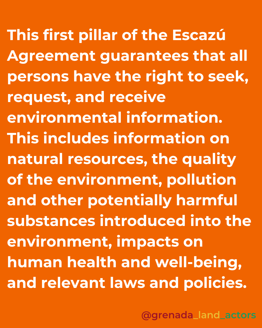 Environmental information must be shared in a variety of media (orally, in print, visual media, etc.) and must be comprehensible and accessible – i.e., available in a language that persons can understand. Our main language in Grenada is English, so this is less applicable for us, but for other islands with large Creole/Kreyol-speaking populations, information must be provided in those languages as well.